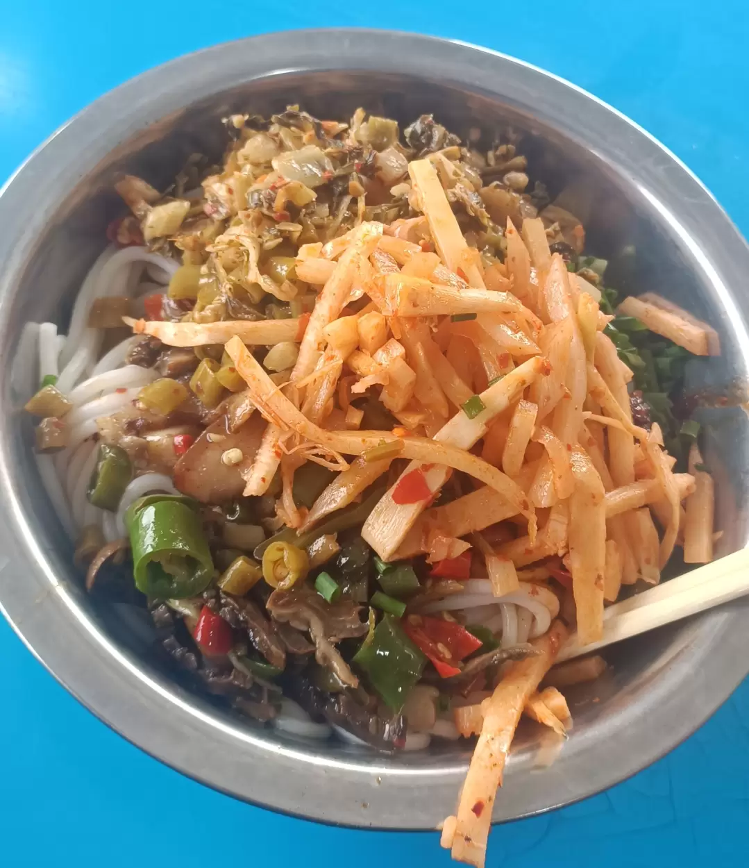 有一天自己去桂林市区的十字街逛了一下,说实话没什么好玩的,但是吃到了很久没吃的桂林米粉,三两卤菜粉只花了6元钱,还是多年前的价格没变,那么划算。然后还买了份云吞尝尝,买了两杯蜜雪冰城的饮料,加上公交车来回车费,那天总共花了30元。