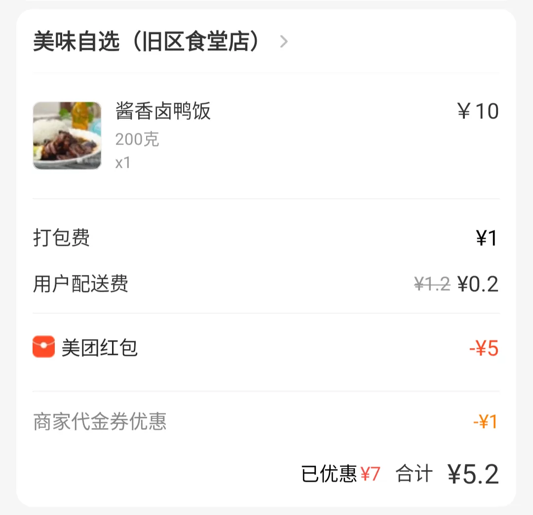 我这里使用了一个店铺新用户的1元代金券,如果复购的话,这餐成本就需要 9.2元 啦